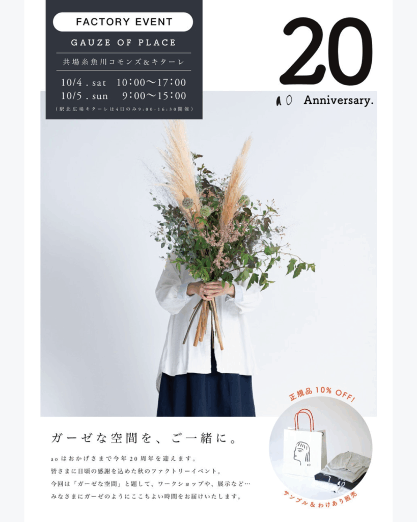 10月4日(土)、5日(日) ao『20th Anniversary』出店のお知らせ